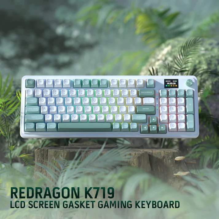 Redragon K719 is with 1.41 in info center TFT screen, gathering keyboard info, connection mode, battery level, typing status, unveiling everything you want to know, enjoy gif meme customized fun for the present mood.